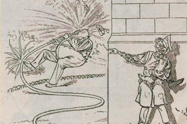 Du dessinateur Pépin à Wilhelm Busch, en passant par Adolf Oberländer, généalogie d’un gag viral racontant l’histoire nocturne d’un pompier qui éteint son bonnet de nuit qui prend feu en plongeant la tête la première dans son pot de chambre.