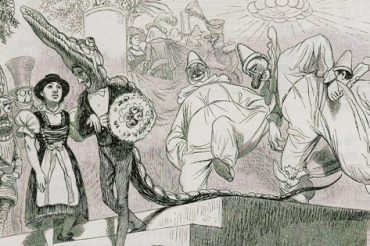 « Das Krokodil » (1889) est sans doute l’une des plus intéressantes bandes dessinées qu’ait donnée Adolf Oberländer, et qui rappelle certaines planches que donnera Will Eisner un siècle plus tard…