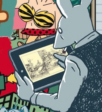 Sur l’affiche du festival de la bande dessinée d’Angoulême 2012, Art Spiegelman a dessiné une souris lisant un album de Rodolphe Töpffer sur une tablette. Un clin d’oeil au Genevois. Mais malheureusement la littérature en estampes de ce dernier est peu disponible en numérique…