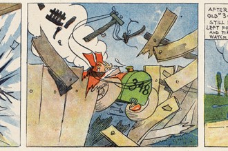 Une balle qui passe de case en case, détruisant tout sur son passage… Ce motif récurrent traverse les océans et se retrouve chez Benjamin Rabier, Winsor McCay et Peter Newell.