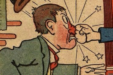 Le nez se trouve régulièrement au centre d’histoires en images tout au long du XIXe siècle. Premier exemple avec cette planche de J.Blass parue en 1893 dans la revue L’Illustré du Soleil du Dimanche.