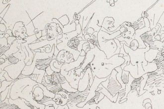 Les 2 et 9 août 1862, Théodore-Georges Fath dessine les tribulations du chien « Azor pendant la canicule » qui s’enfuit du foyer.