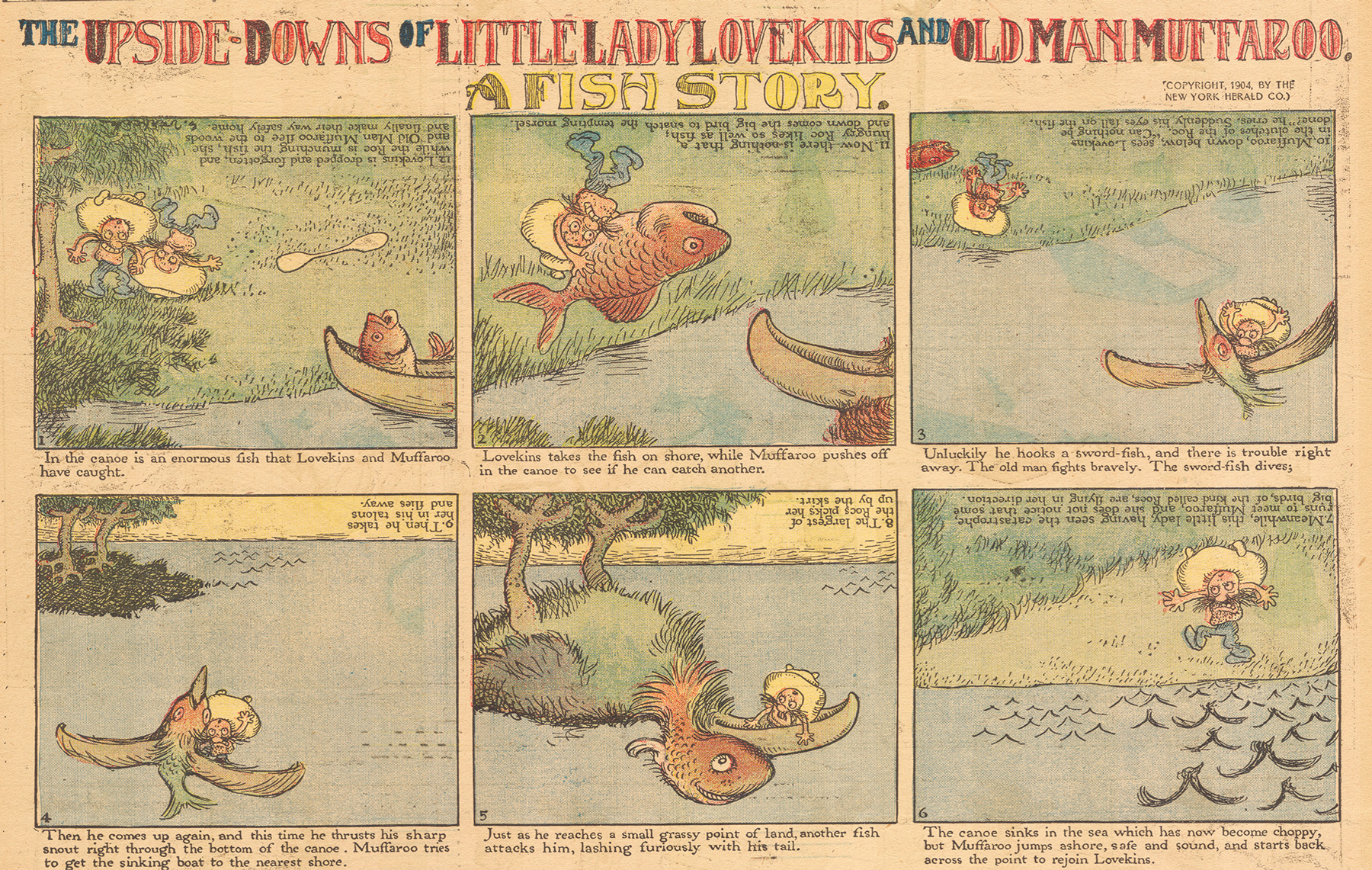 Gustave Verbeek, The Upside Downs of Little Lady Lovekins and Old Man Muffaro, « A Fish Story », Sunday Record-Herald (Chicago), 31 juillet 1904.