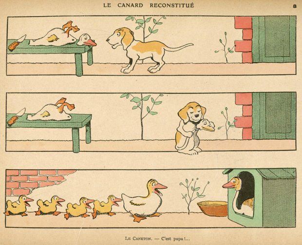 Benjamin Rabier, « Le canard reconstitué », extrait de  Les animaux s’amusent, Garnier, 1911, p. 8. Source : Bibliothèque municipale de Toulouse.