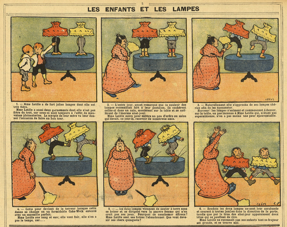 Rudolph Dirks, « Les Gamins et les lampes » [The Katzenjammer Kids], Le Journal pour tous, 15 juin 1899.Rudolph Dirks, « Les Gamins et les lampes », Le Journal pour tous, 15 juin 1899. Source : Gallica.bnf.fr