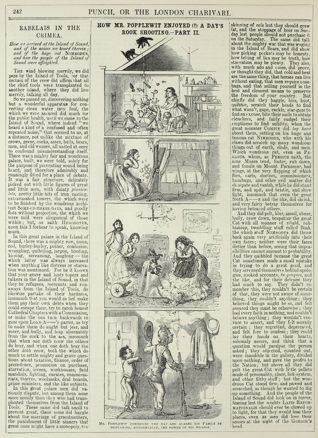 CK (Charles Keene ?), « How Mr. Popplewit enjoyed (?) a day’s rook shooting. – Part II », Punch, 1855.