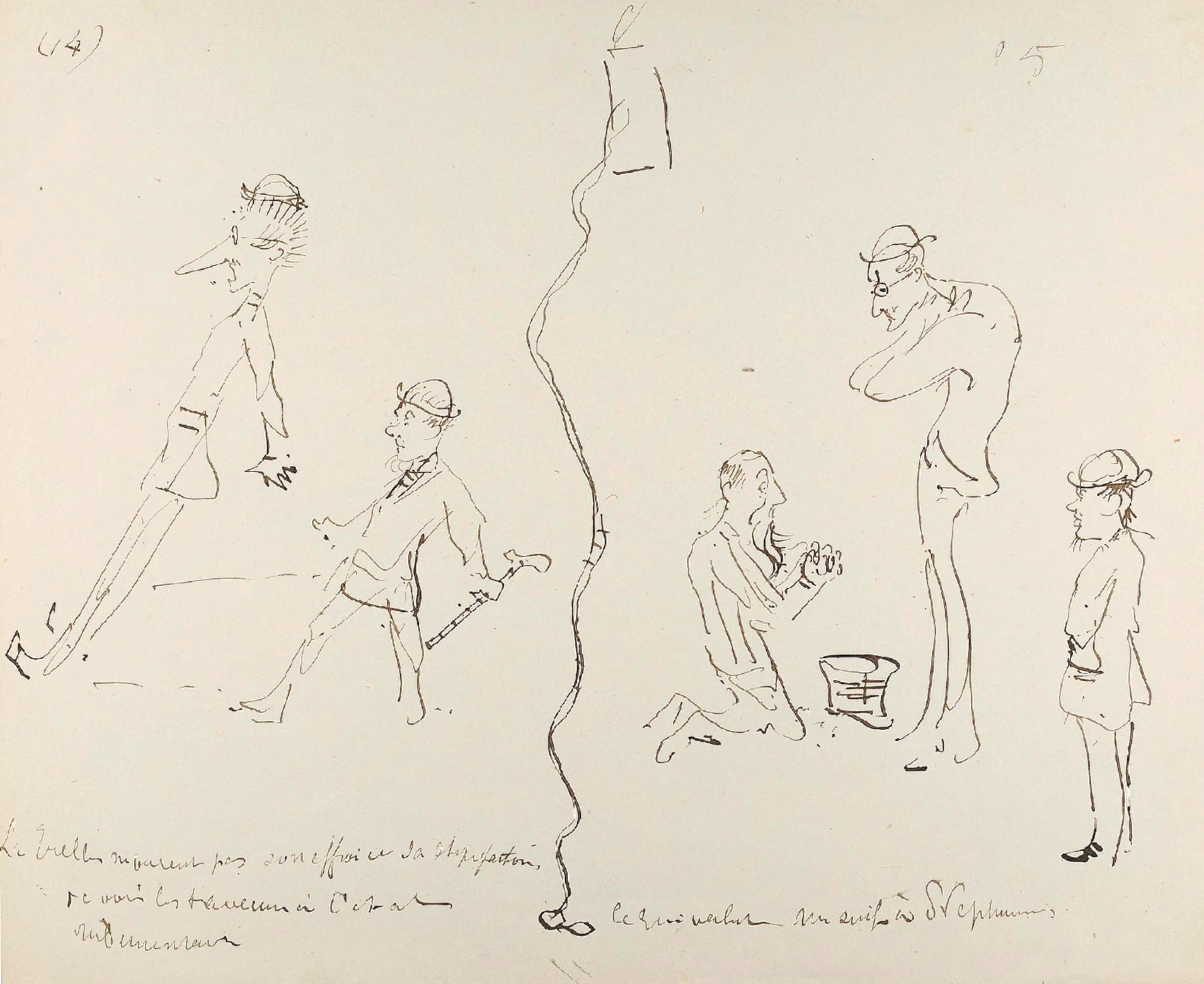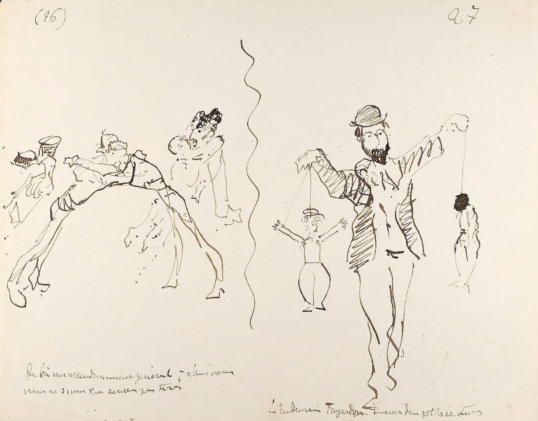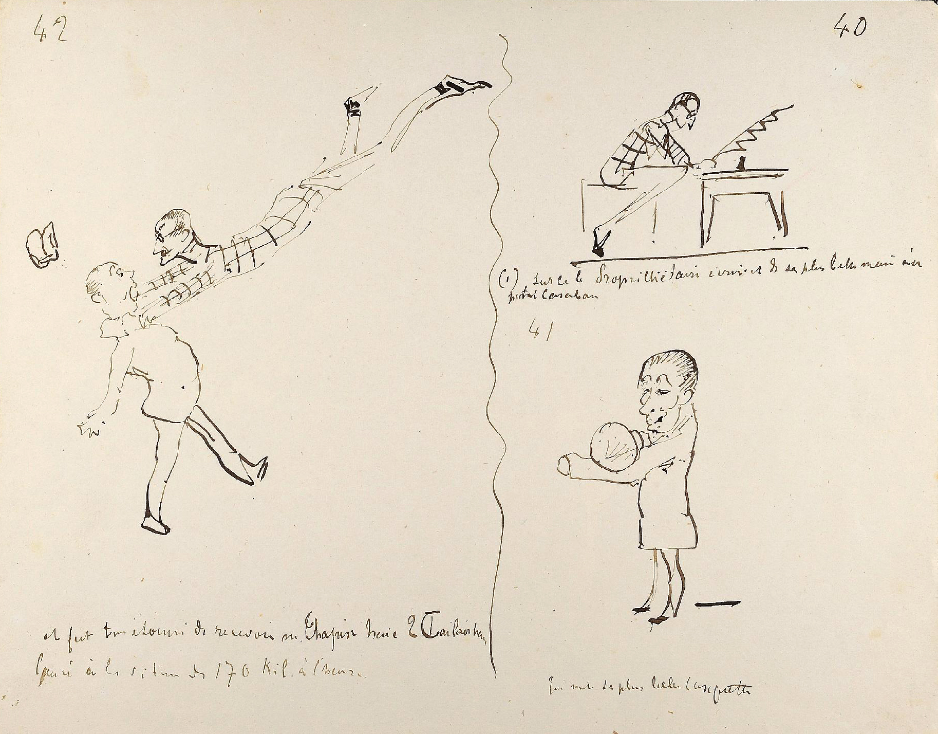 Curnonsky parle de ces dessins comme de « croquis, animés d’une vie intense et d’une espèce d’humour baroque et singulier », enjoignant le lecteur à en admirer « la maîtrise, la sûreté, le mouvement, la fougue et le sens caricatural » (3). Les légendes de la main de Toulouse-Lautrec sont peu lisibles et compréhensibles, truffées de rébus, de calembours et d’onomatopées, comme Toulouse-Lautrec les aimait. Comme le note Curnonsky, elles « ont sans doute un sens ésotérique et sont pleines d’allusions à des évènements et à des faits oubliés (4). »