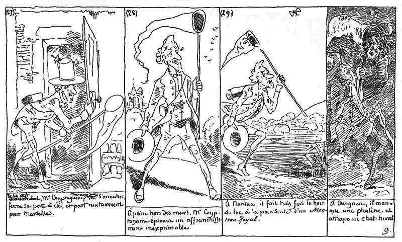 Fig. 16 – R. Töpffer, Histoire de Mr Cryptogame, pl. 9, version de 1844 reproduite dans Rodolphe Töpffer, Pierre Horay éditeur, 1996, p. 244.