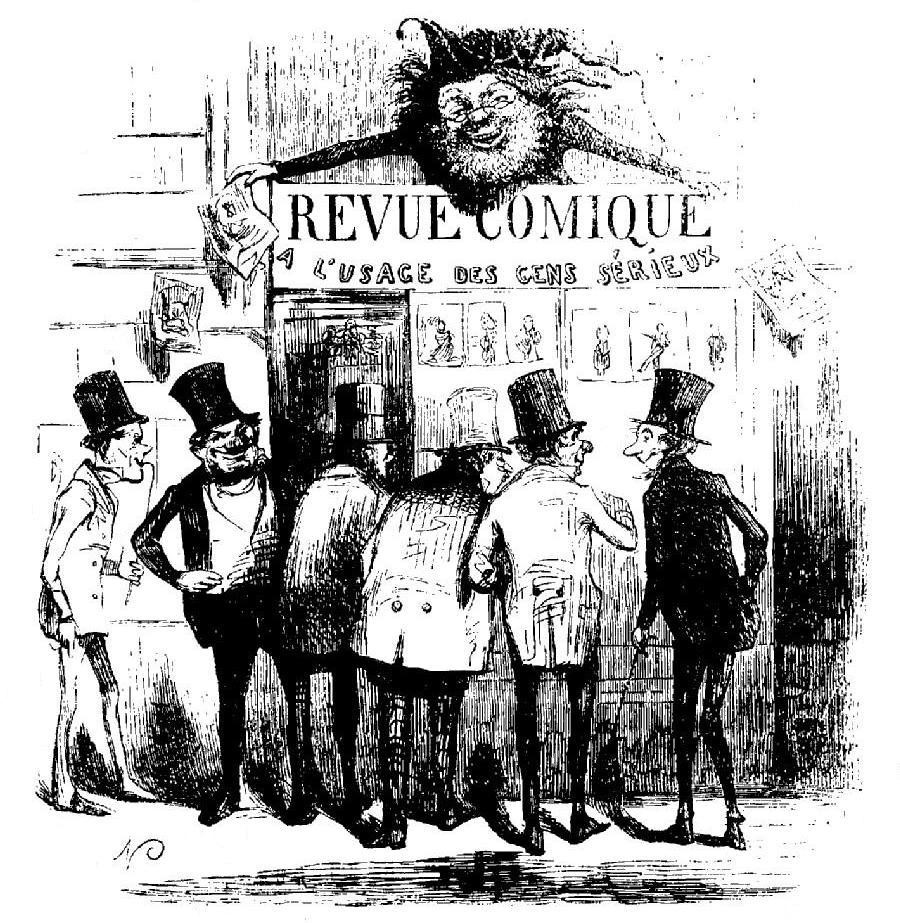 Dans cette Revue comique, « au fond toujours sérieuse » comme l’indique la préface, texte et image sont mis sur un pied d’égalité, le dessin est même donné comme l’unique caution du caractère plaisant, « comique », du journal :