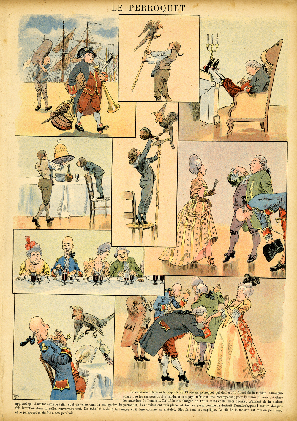 Fig. 32 – R. de la Nézière, Le perroquet, Imagerie artistique, série 12, numéro 20, 1894. Coll. numérisée Cité Internationale de la bande dessinée d’Angoulême.