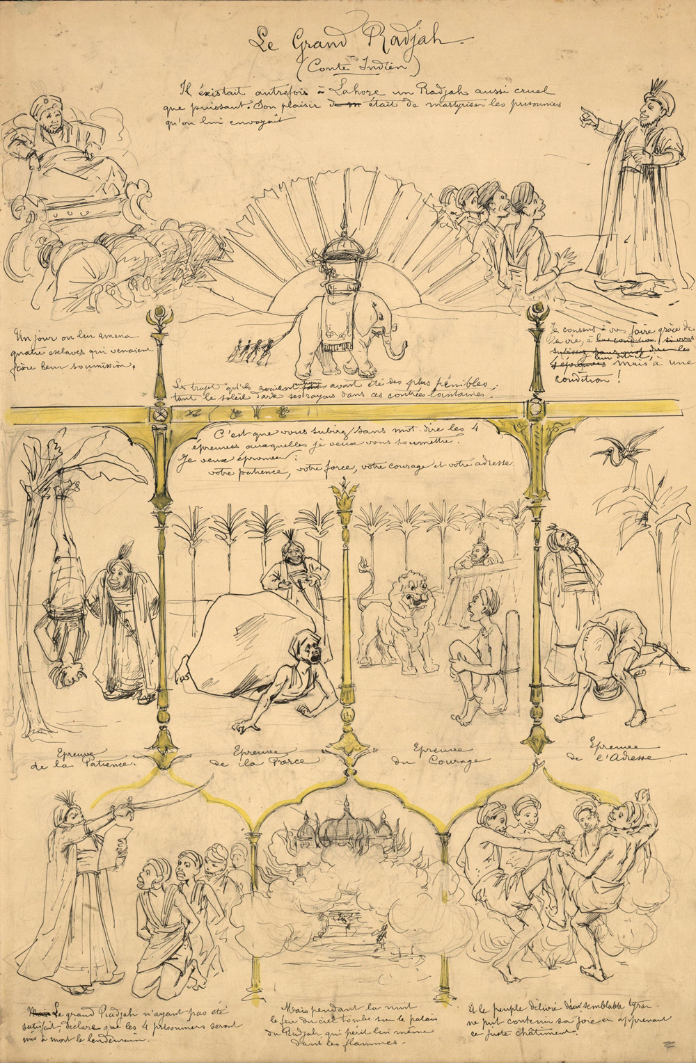 Fig. 33 – F. Lacaille, Le rajah, planche originale et imprimée, Imagerie artistique, série 11, numéro 9, 1893. Coll. numérisée Cité Internationale de la bande dessinée d’Angoulême.
