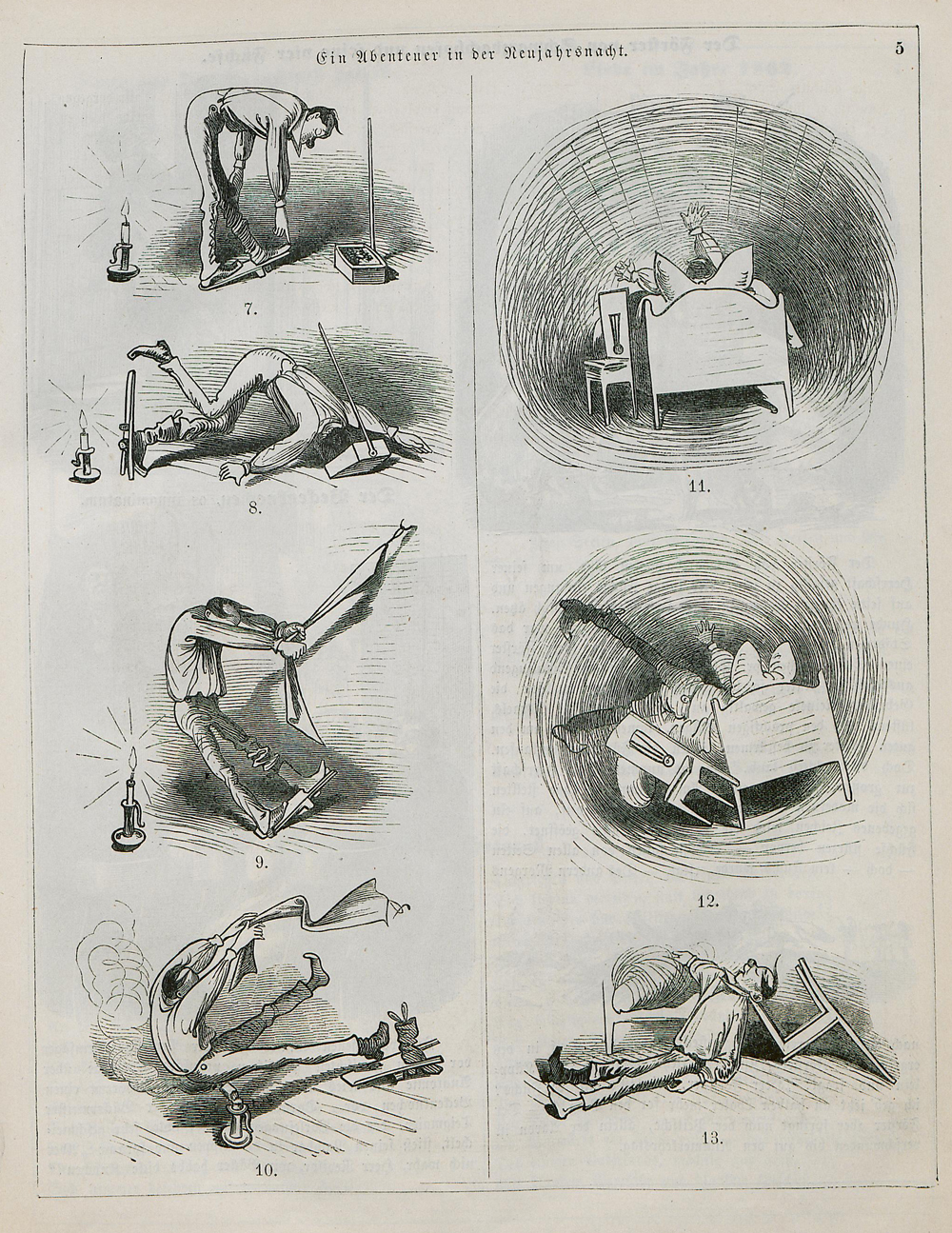 Wilhelm Bush, « Ein Abenteuer in der Neujahrsnacht », Fliegende Blätter n° 913, 1863. Source : Heidelberg University Library.