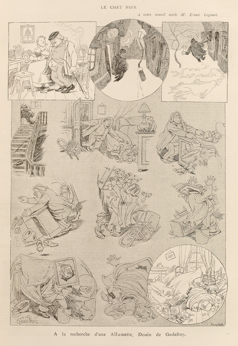 Godefroy, « A la recherche d’une allumette », Le Chat Noir, n° 318, 11 février 1888. Source : Gallica.bnf.fr