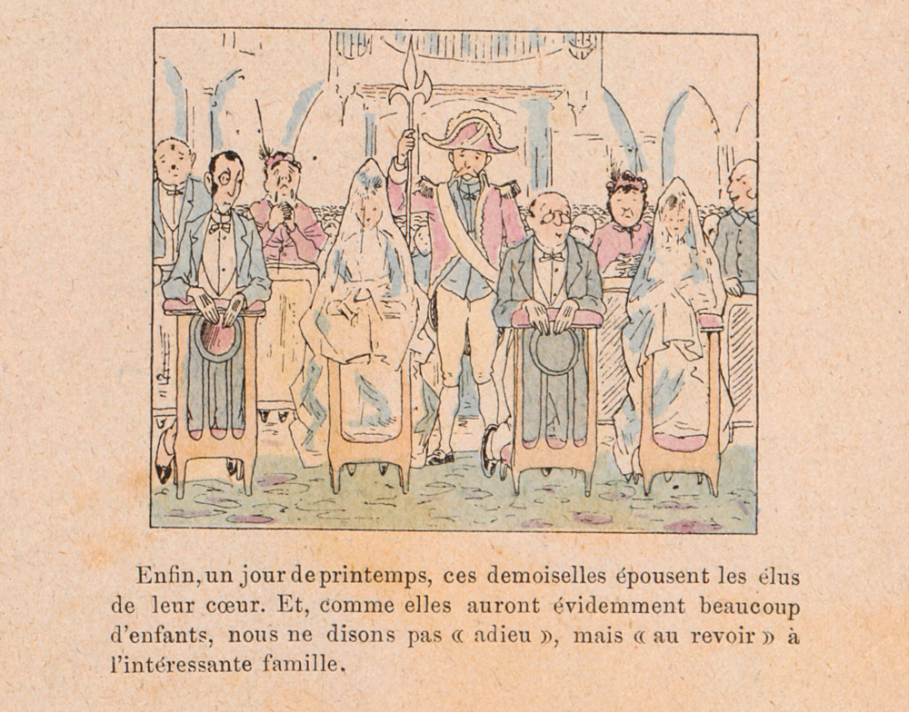 Dans la dernière case de son album La famille Fenouillard (1893), Christophe nous laissait sur le mariage des deux jeunes sœurs Artémise et Cunégonde qui prenaient pour époux Anatole et Polydore, les neveux du docteur Mauve (Guy, de son prénom). En légende, l’auteur concluait ainsi : « Et, comme elles auront évidemment beaucoup d’enfants, nous ne disons pas “adieu”, mais “au revoir” à l’intéressante famille (1). »