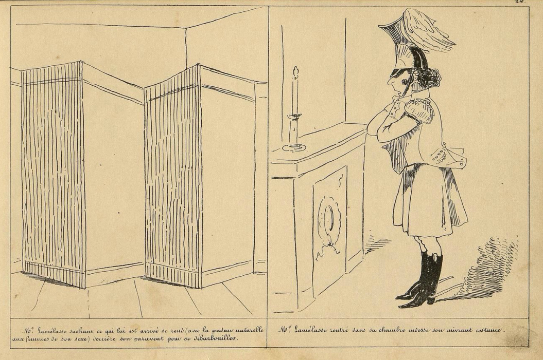 Dans Mr Lamélasse (1839), c’est un paravent qui permet à Cham de masquer la toilette du héros :