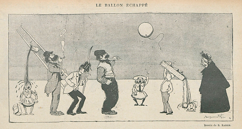 Benjamin Rabier, « Le ballon échappé », Le Rire, n° 88, 11 juillet 1896.