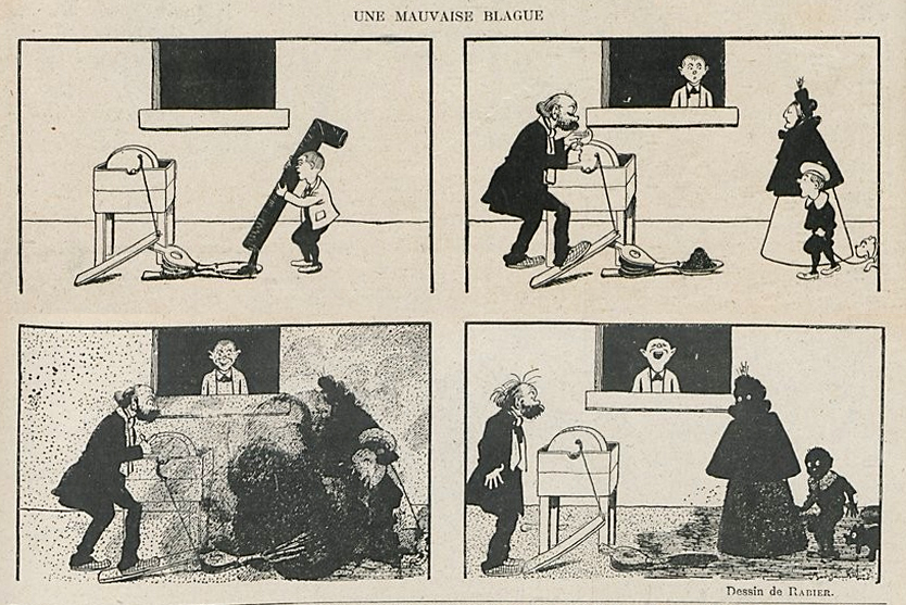 Mise à jour du 14 mai 2019 : Un rapprochement entre un film Lumière et une autre histoire en images de Benjamin Rabier peut également être fait. En effet, la « mauvaise blague » parue dans Le Rire du 30 octobre 1897 rappelle furieusement la vue n° 889 projeté pour la première fois en 1898 :