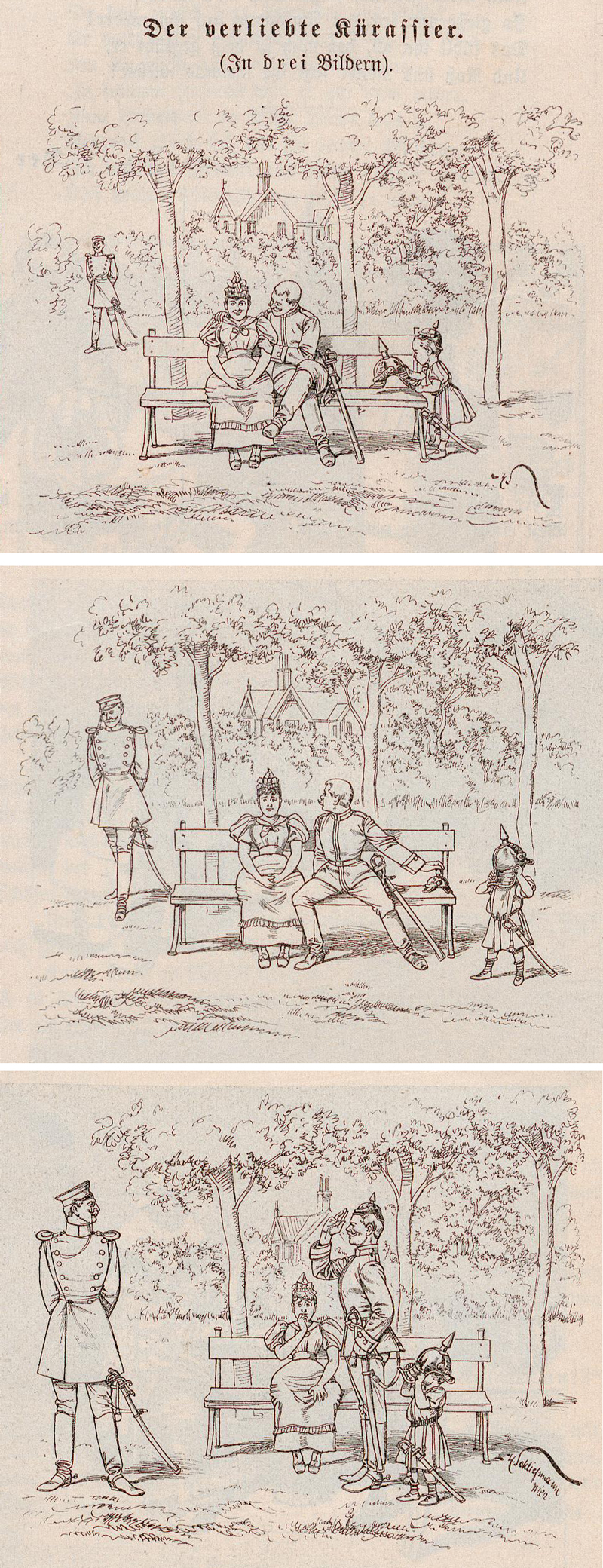 Hans Schliessmann, « Der verliebte Kürassier », Fliegende Blätter, n° 2625, 1895.