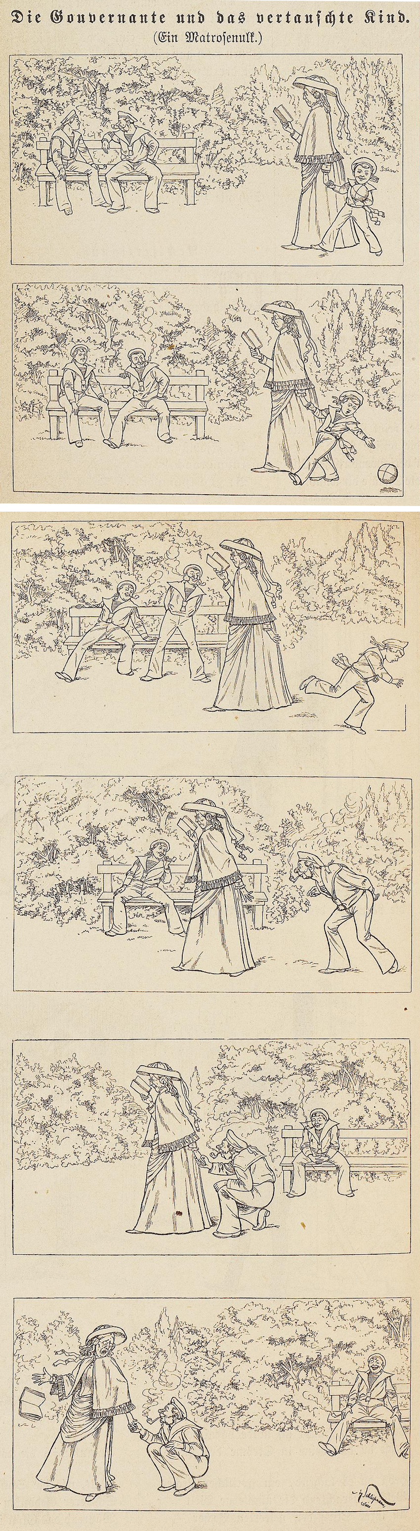 Hans Schliessmann, « Die Gouvernante und das vertauschte Kind (Ein Matrosenult) », Fliegende Blätter, n° 2344, 1890. Source : Universitätsbibliothek Heidelberg