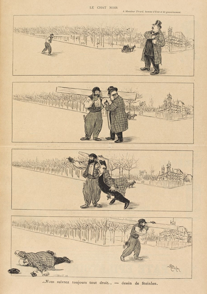 Théophile Alexandre Steinlen, « Vous suivez toujours tout droit… », Le Chat noir, n° 425, 8 mars 1890.