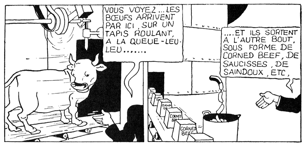 Hergé, cases extraites de Tintin en Amérique (1932).