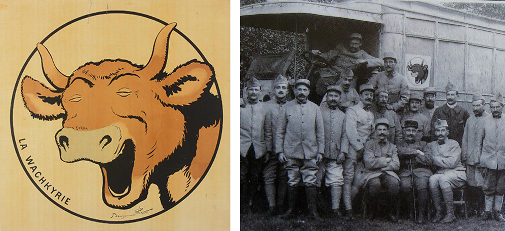 La Wachkyrie, dessin de Rabier sur les camions du régiment du Ravitaillement en viande fraîche (RVF), vers 1917.