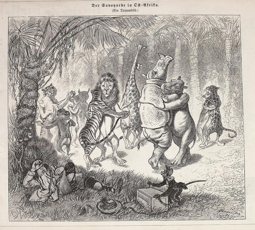 Adolf Oberländer, « Der Savoyarde in Ost-Afrika. Ein Traumbild », Fliegende Blätter, n° 2657, 1896.