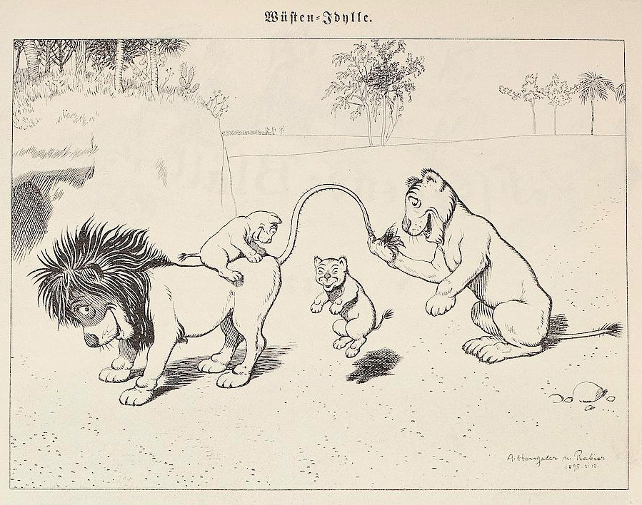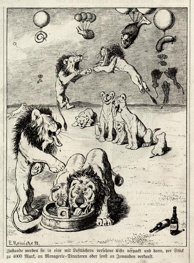 Emil Reinicke, « Neueste Methode, Löwen zu fangen » [Nouvelles méthodes pour attraper les lions], Fliegende Blätter, n° 2452, 1892.