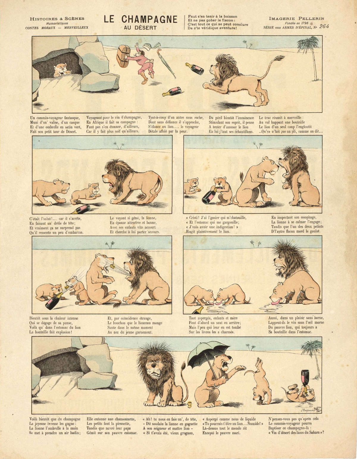 Benjamin Rabier, « Le champagne au désert », Imagerie d’Epinal, n° 264 de la Série aux Armes, 1899.