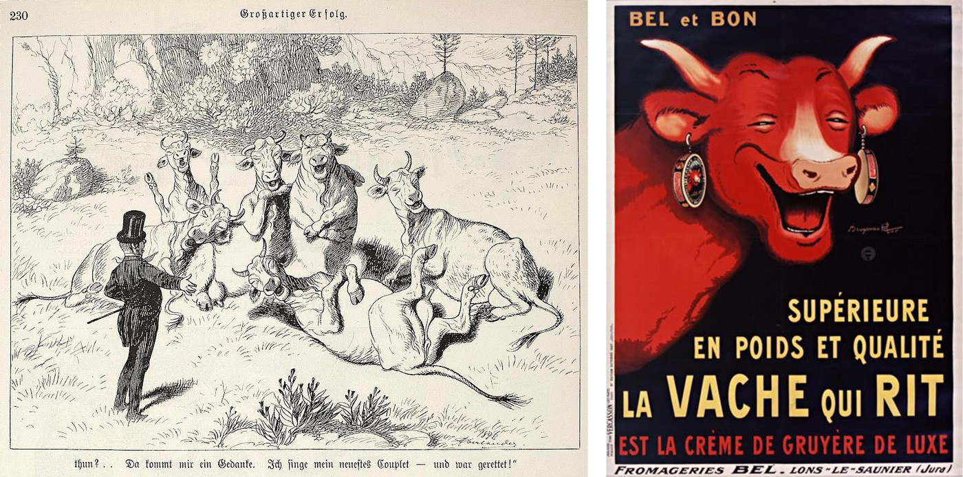 à droite : Affiche publicitaire pour La Vache qui rit, 1926