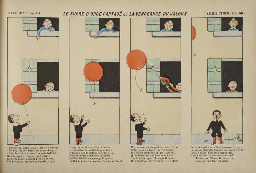 Benjamin Rabier, « Le sucre d’orge partagé ou la vengeance du jaloux », Pour amuser petits et grands n° 3, 1902.
