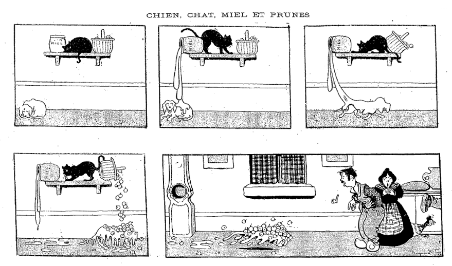 Benjamin Rabier, « Chien, chat, miel et prunes », Le Pêle-Mêle, 4 février 1900.