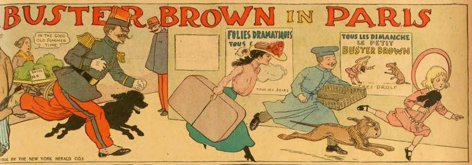 > Retrouvez les strips de Buster Brown publié dans l’édition européenne du New York Herald entre 1904 et 1913 dans notre article : « Les comic strip du Paris Herald »