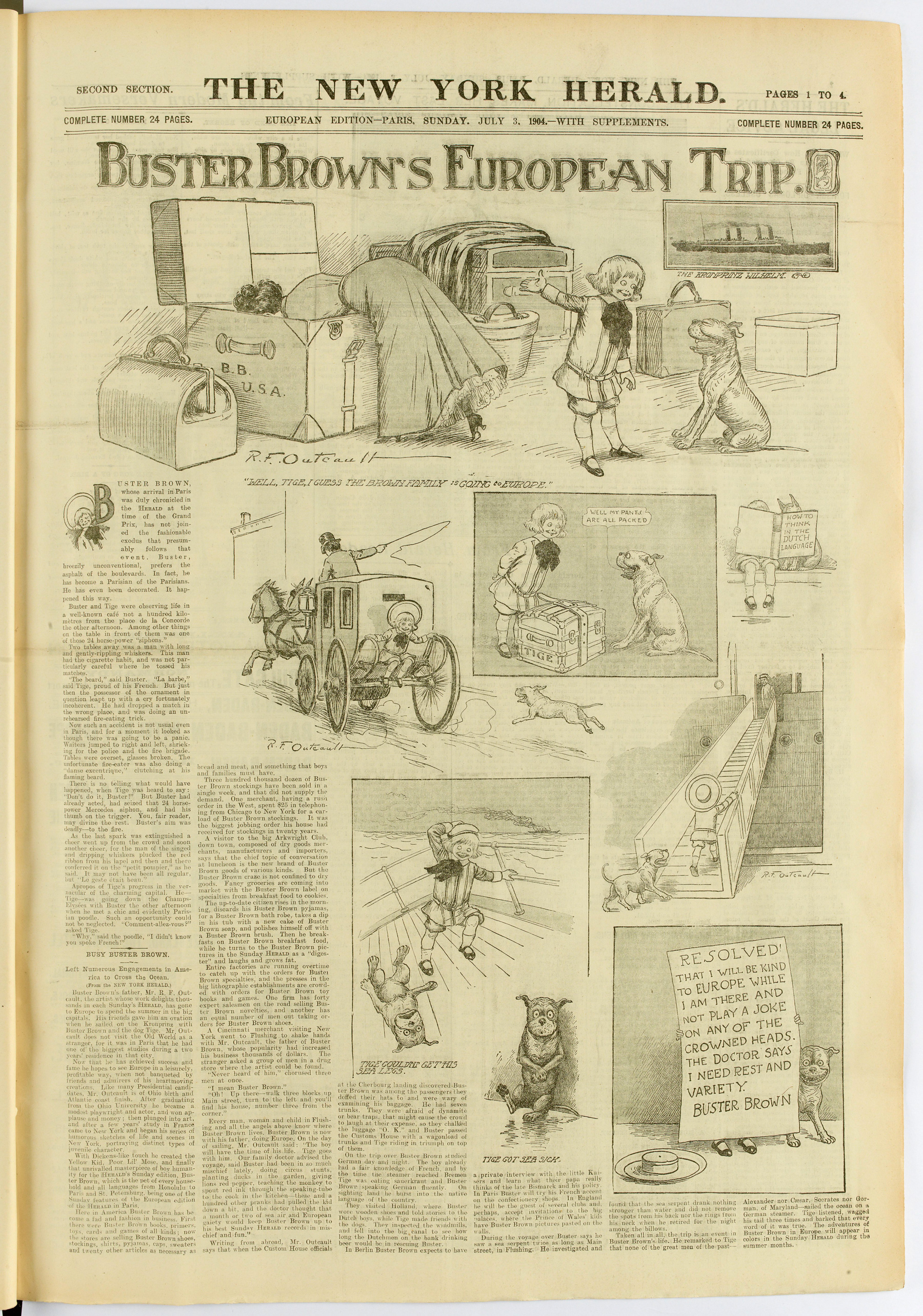« Buster Brown’s European Trip », New York Herald, édition européenne, 3 juillet 1904. Source : Gallica.bnf.fr