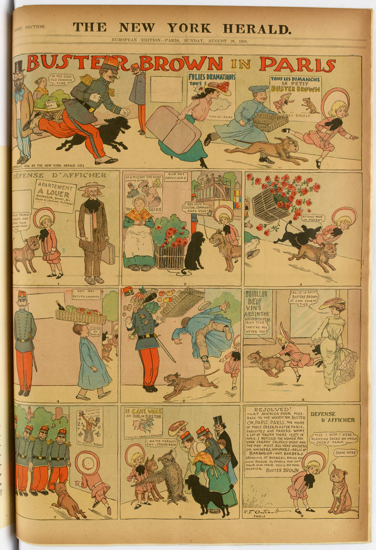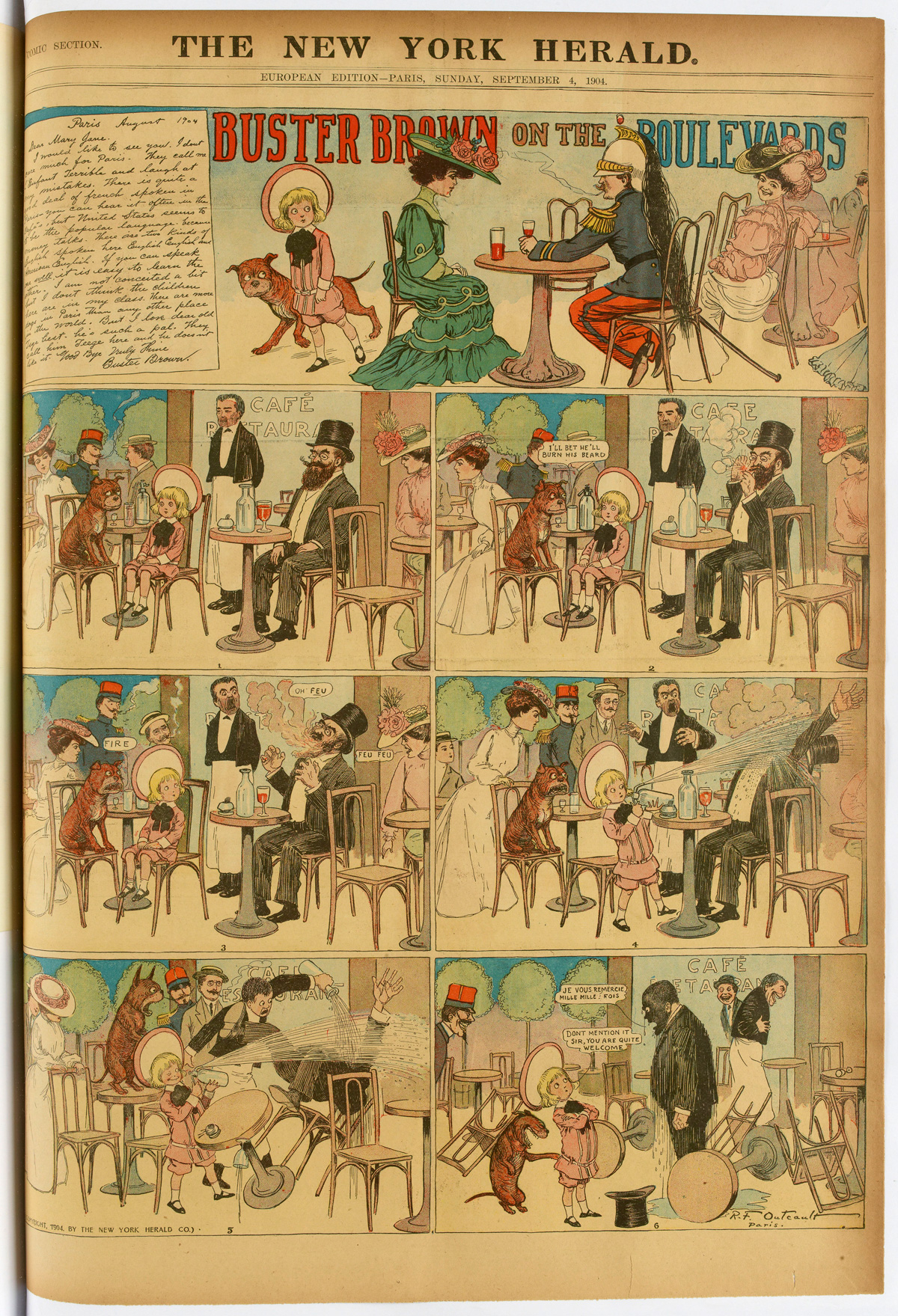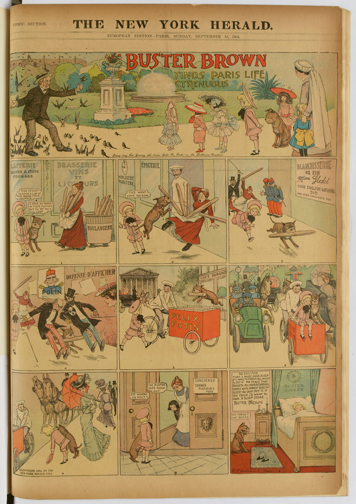 R.F. Outcault, « Buster Brown on The Boulevards », New York Journal, éd. européenne, 4 septembre 1904. Source : Gallica.bnf.fr