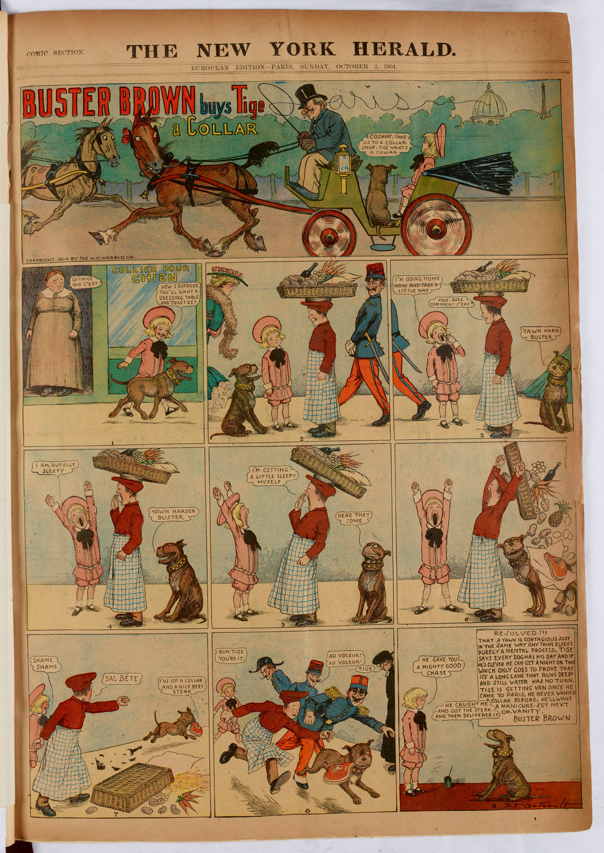 R.F. Outcault, « Buster Brown Buys Tige a Collar », New York Journal, éd. européenne, 2 octobre 1904. Source : Gallica.bnf.fr