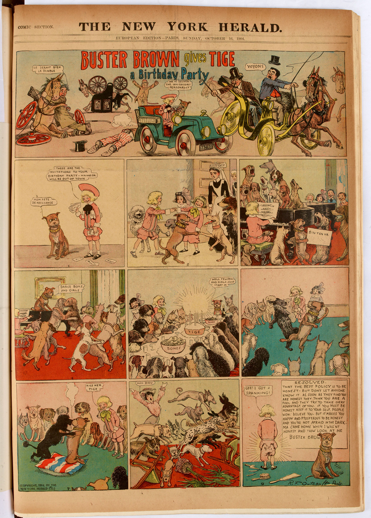 R.F. Outcault, « Buster Brown Gives Tige a Birthday Party », New York Journal, éd. européenne, 16 octobre 1904. Source : Gallica.bnf.fr