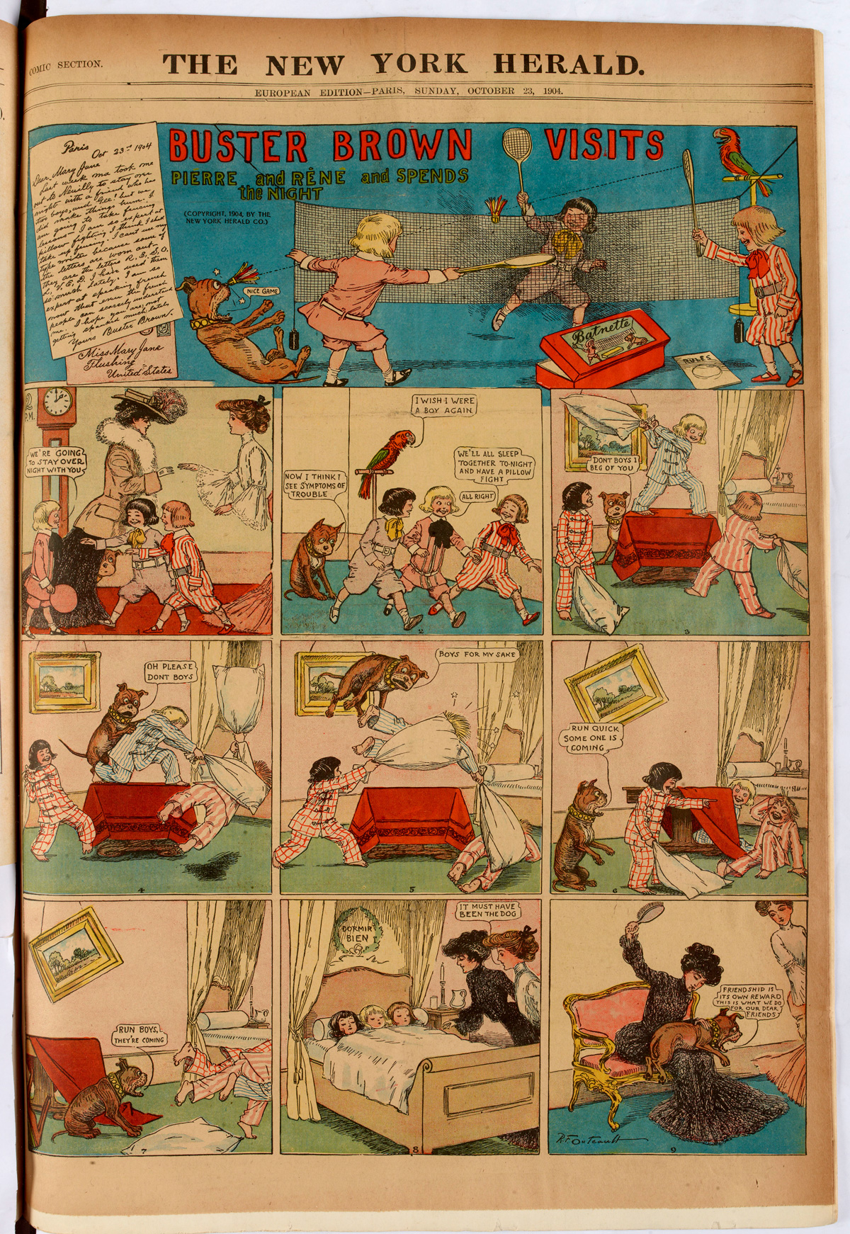 R.F. Outcault, « Buster Brown Visits Pierre and René and Spend the Night », New York Journal, éd. européenne, 23 octobre 1904. Source : Gallica.bnf.fr