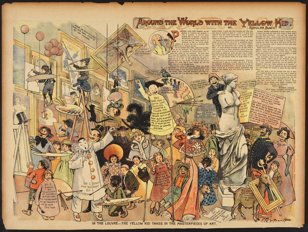 R. F. Outcault, « Around the World With The Yellow Kid: In the Louvre-The Yellow Kid Takes in the Masterpieces of Art », New York Journal, 28 février 1897. Source : Billy Ireland Cartoon Library and Museum