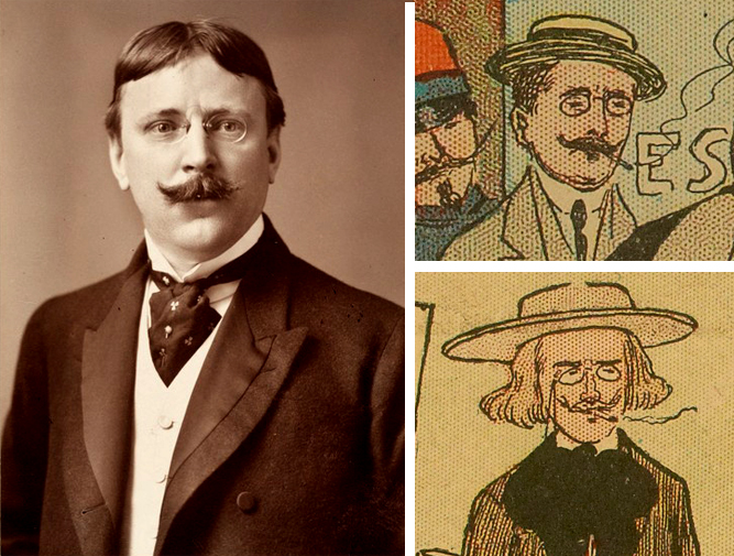 Outcault s’est-il lui-même représenté dans ces pages ? Au moins deux personnages dans ces comic strips parisiens évoquent le visage du dessinateur aux petites lunettes rondes et à la moustache courbe et remontante.