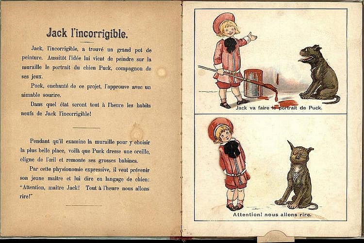 Mise à jour du 28 mars 2020 : Michel Kempeneers nous signale l’existence de deux livres à système reprenant les personnages de Buster Brown et son chien. Ils sont tout deux réalisés par Adeline Reynaud et publiés par l’éditeur parisien Capendu, au début du XXe siècle. À chaque fois, les noms des héros ont été changé : Jack l’Incorrigible et son chien Puck et Le petit Bob et son chien Trilby.