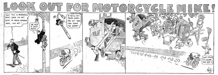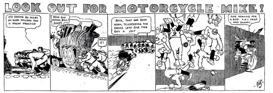 Frank King, « Look Out for Motorcycle Mike ! », The Chicago Tribune, 21 septembre 1913.