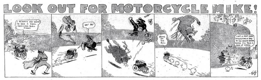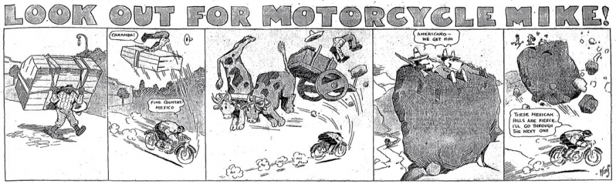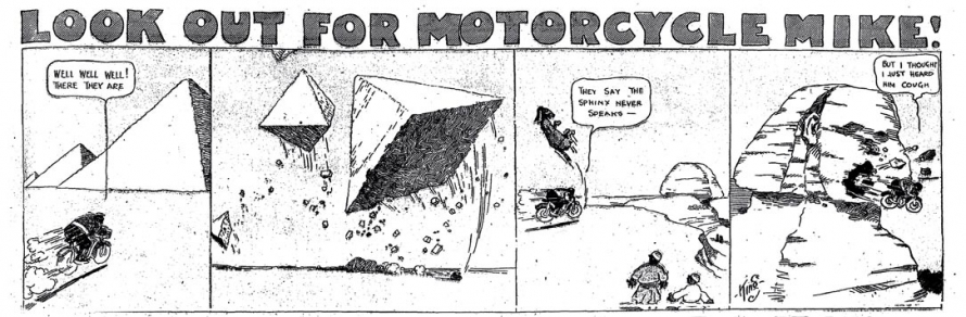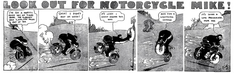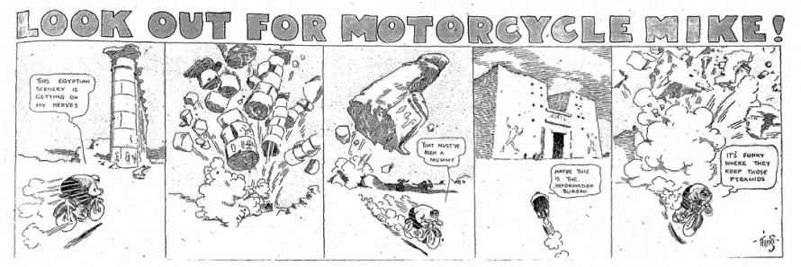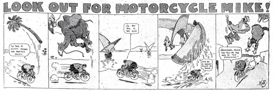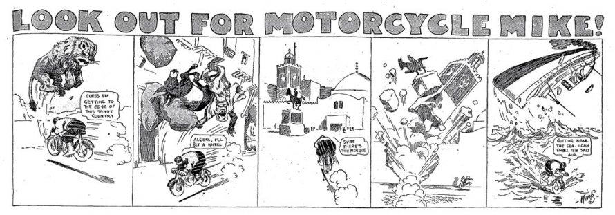 1. Motorcycle Mike fut également distribué dans le Boston Daily Globe aux alentours de 1912.[]