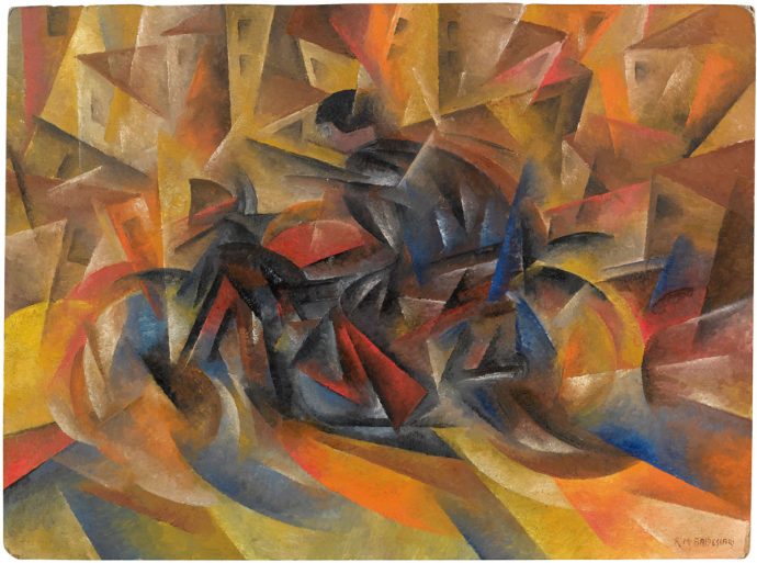 Roberto Marcello Baldessari, Motociclista+città+velocità, 1916.