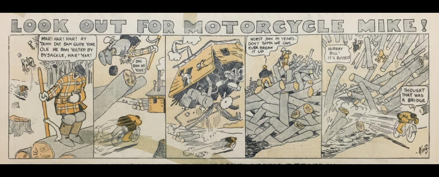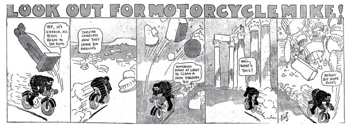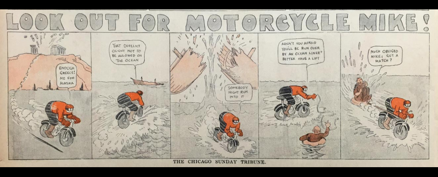 Frank King, « Look Out for Motorcycle Mike ! », The Chicago Tribune, 21 septembre 1913.