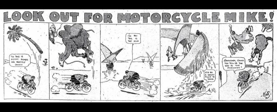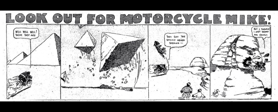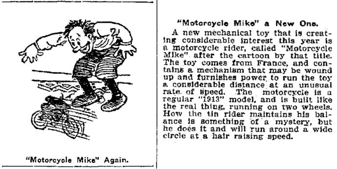 1. Motorcycle Mike fut également distribué dans le Boston Daily Globe aux alentours de 1912.[]