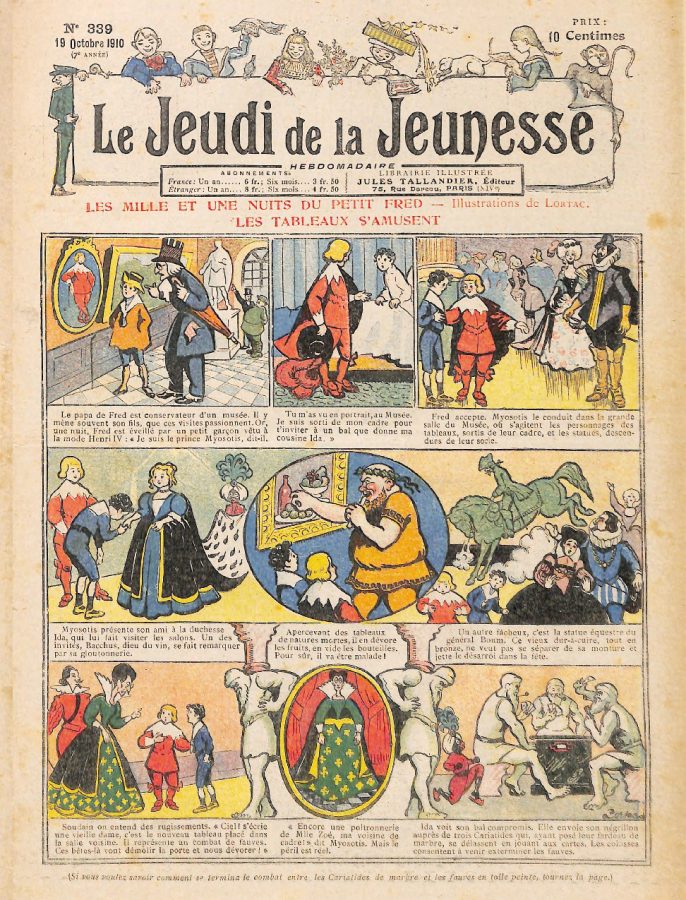 Lortac, « Les Mille et une nuits du petit Fred. Les tableaux s’amusent », Le Jeudi de la Jeunesse, n° 339, 19 octobre 1910. Source : Juventa.fr